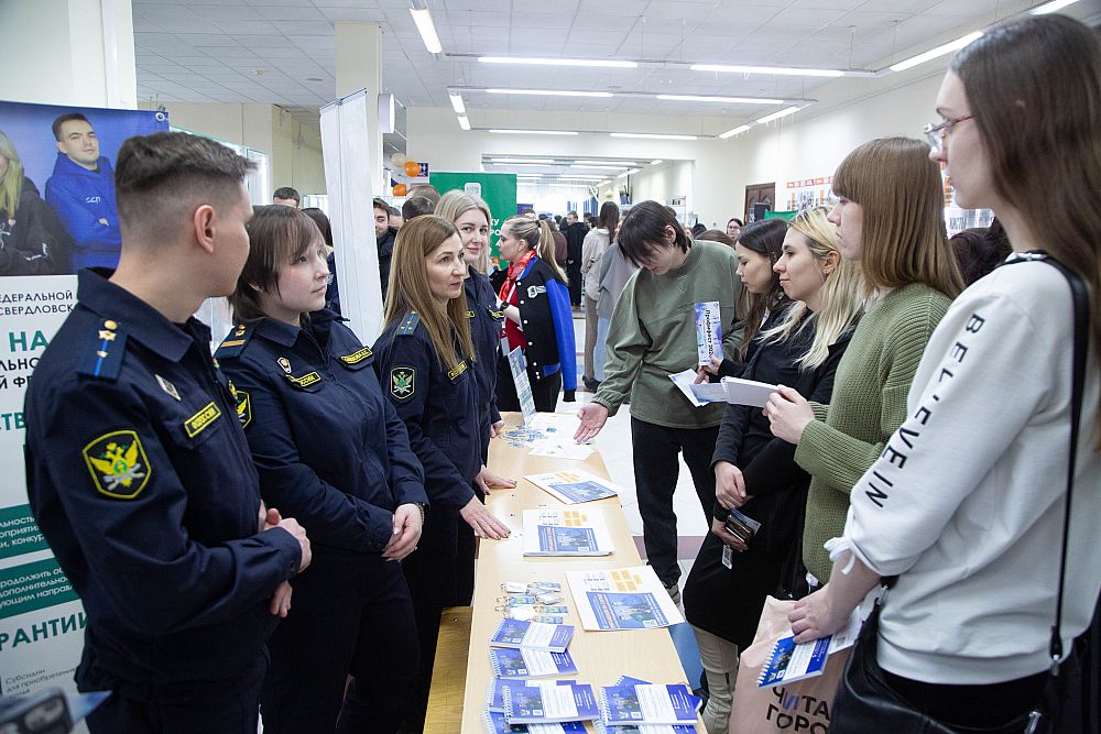 На «ПрофиФесте-2026» студенты смогли познакомиться с более 50 работодателей. Открыл ярмарку вакансий и.о. ректора УрГЭУ Яков Силин.